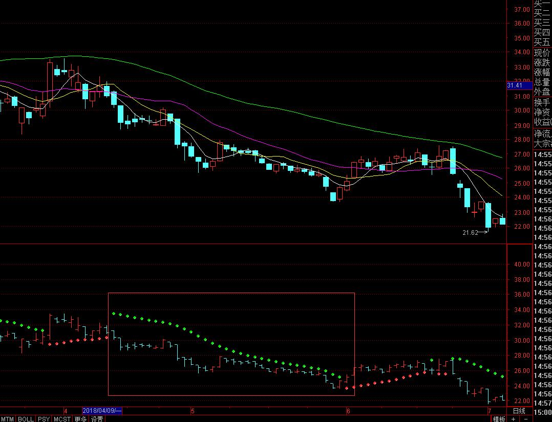 當股票股價從SAR曲線下方開始向上突破SAR曲線時,為買入信號,預示著股價一輪上升行情可能展開,投資者應迅速及時地買進股票。當股票股價向上突破SAR曲線后繼續向上運動而SAR曲線也同時向上運動時,表明股價的上漲趨勢已經形成,SAR曲線對股價構成強勁的支撐,投資者應堅決持股待漲或逢低加碼買進股票。當股票股價從SAR曲線上方開始向下突破SAR曲線時,為賣出信號,預示著股價一輪下跌行情可能展開,投資者應迅速及時地賣出股票。當股票股價向下突破SAR曲線后繼續向下運動而SAR曲線也同時向下運動,表明股價的下跌趨勢已經形成,SAR曲線對股價構成巨大的壓力,投資者應堅決持幣觀望或逢高減磅。