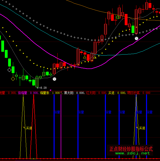 倍縮量:VOL/REF(VOL,1)<0.5,STICK,COLORFF00FF,linethick2;