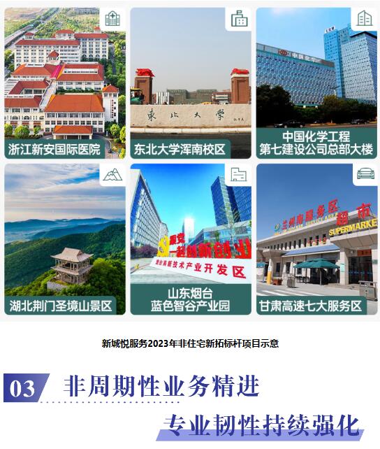 新城悅服務對于規模結構的調整,不僅限于“城市聚焦”引領下的區域結構優化,同時通過持續強化在非住宅領域的拓展力度,不斷完善業態結構優化。報告期內,公司的非住業態物管面積達5037萬┫,收入突破同比增長13.8%達7.3億元。其中,公司在醫院物管服務細分賽道深耕細作,通過精準的市場定位和專業的服務能力“質”取佳績,所承接的醫院服務項目數高達43個,新增合約金額約6000萬元,進一步夯實在該領域的競爭地位。