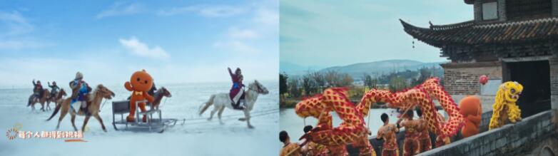 值得一說的是,片尾淘寶為大家慶祝過關的方式讓人眼前一亮。車窗內,人們懷著期期待離家越來越近。車窗外,淘寶的吉祥物淘小寶帶著各地的民俗活動,為新年的到來而慶祝。舞龍燈、打鐵花、馬拉雪橇、哈爾濱國際冰雪節......一路歸途都是值得慶祝的坦途,一路也都有淘寶的陪伴。“淘寶祝你一路通關,助你一路通關”具有人情味的品牌角色也由此巧妙顯現。