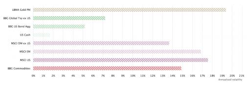 而若我們根據(jù)世界黃金協(xié)會的數(shù)據(jù),在過去約50年中,黃金的年化波動率為19.4%,遠高于摩根士丹利資本國際新興市場指數(shù)、彭博商品指數(shù),甚至超過了標準普爾500指數(shù)的15%年化波動率。那么,是什么樣的原因使得黃金的波動性如此高呢?