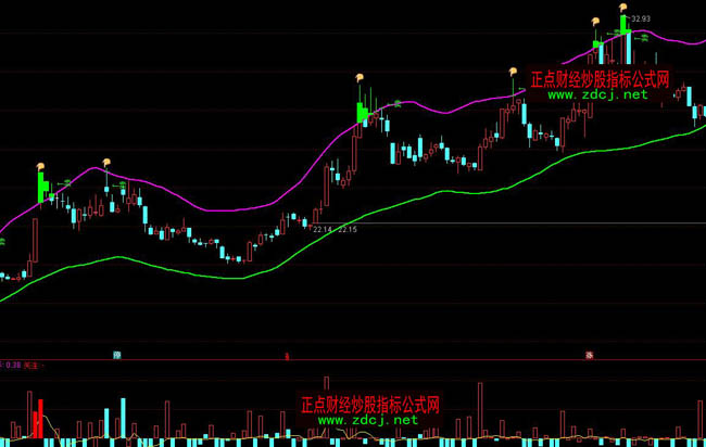 通達信通道買賣波段操盤指標公式:含有未來函數
