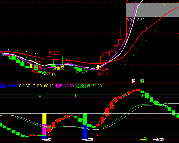 通達信短線與中長線強弱分界大勝買賣指標公式實例圖解: