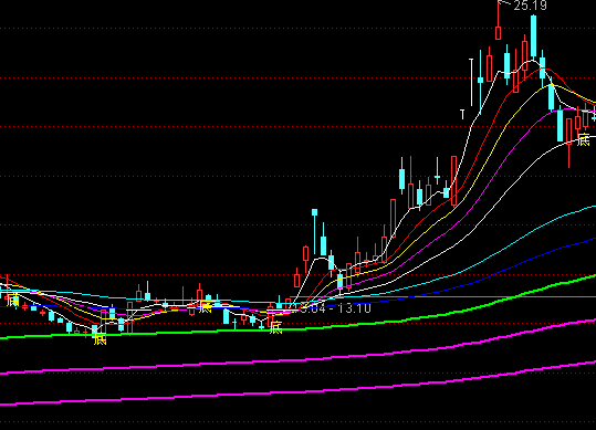 通達信飛翔趨勢主圖指標公式實例圖解: